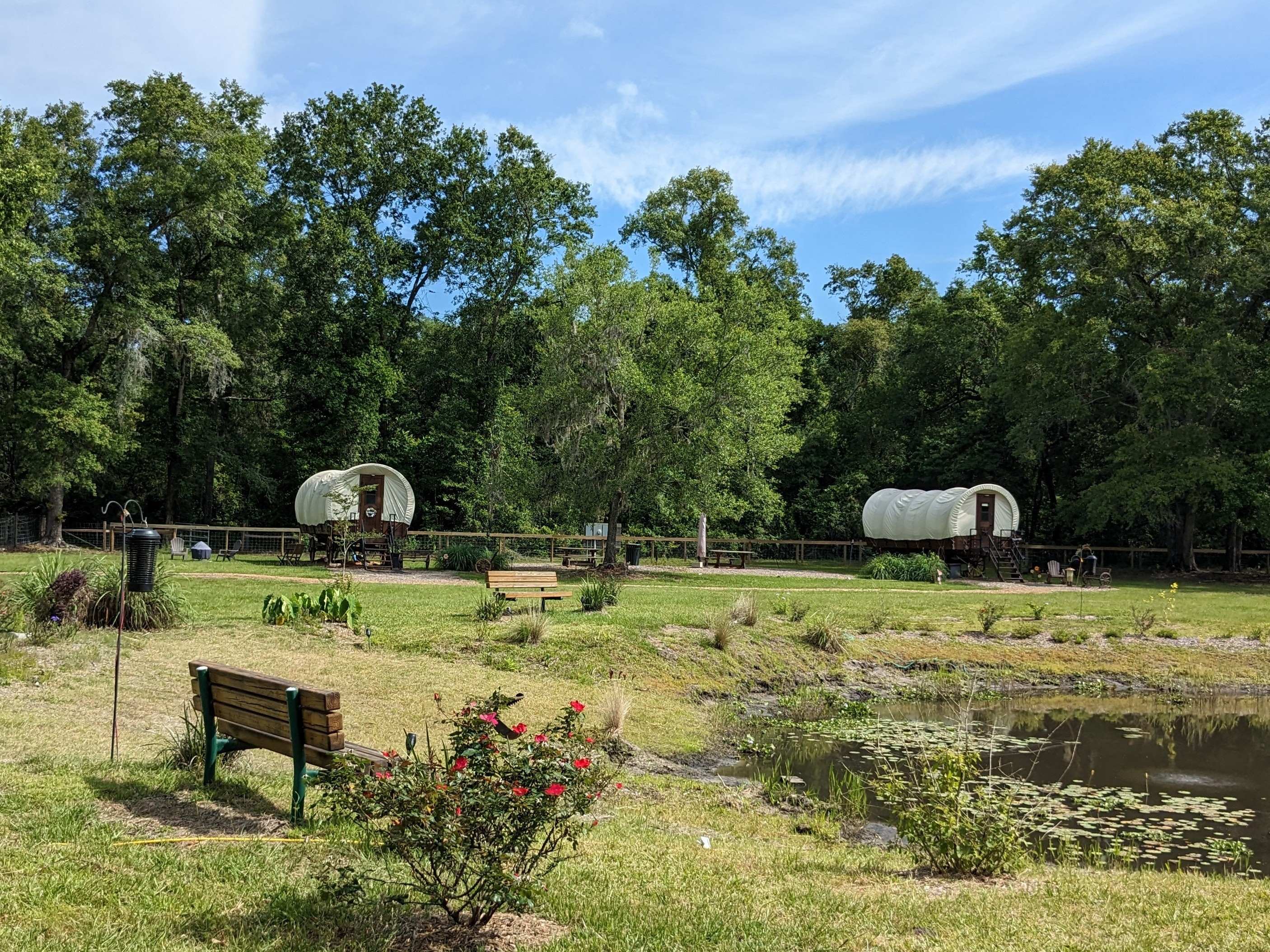 Set against open pastures and peaceful ponds, the wagons offer a quiet retreat at the end of a day spent exploring the farm and connecting with its animals.